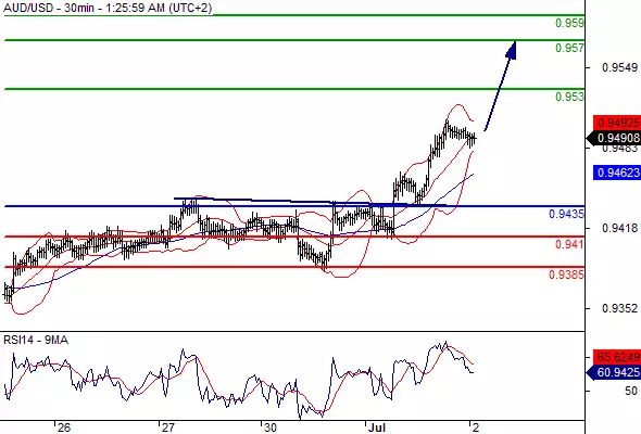 交易策略:在 0.9435 之上,看涨,目标价位为 0.953 ,然后为 0.957 。