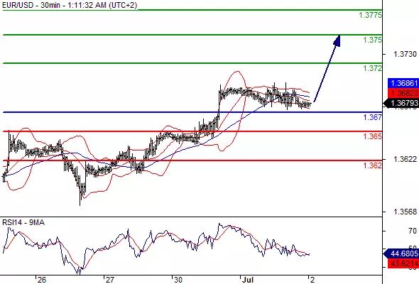 交易策略:在 1.367 之上,看涨,目标价位为 1.372 ,然后为 1.375 。