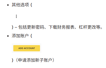 您一次只能申请一个子账户。重要的是要注意,您只能在相同司法管辖区内维护子账户或账户。
